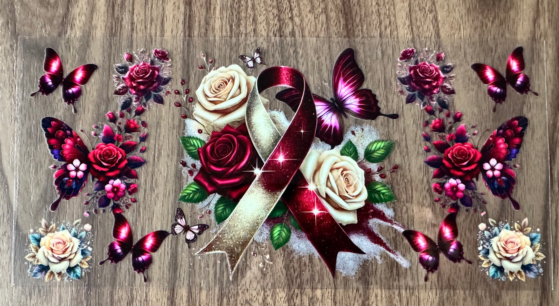 Cream & Maroon Awareness Ribbon Cup Wrap